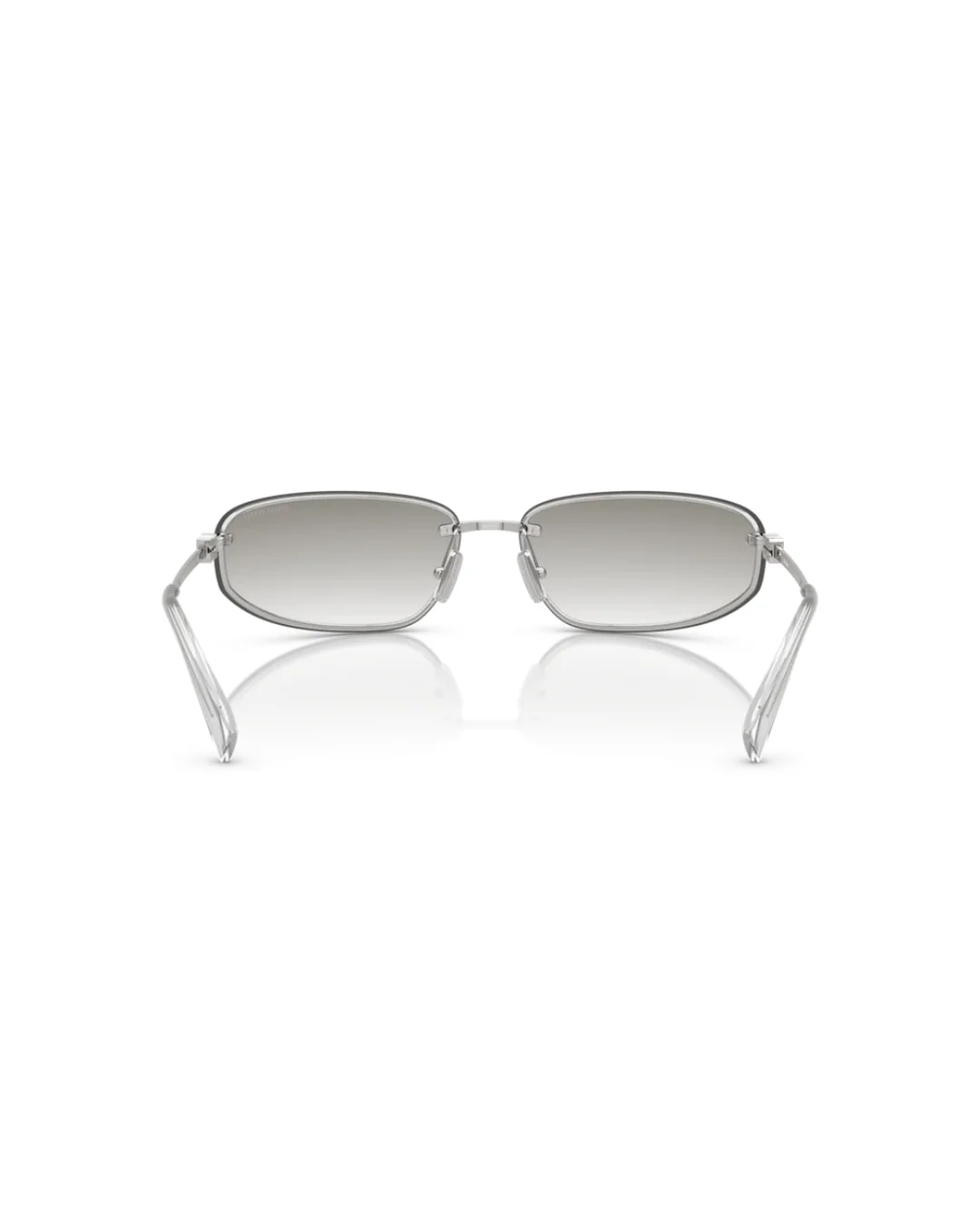 Gafas de sol Miu Miu Nocturne MU A50S 1BC8H1 68 en color plata. La montura color plata 1BC8H1 se complementa con lentes con acabado degradado en plata transparente. Este modelo presenta una forma ovalada de metal