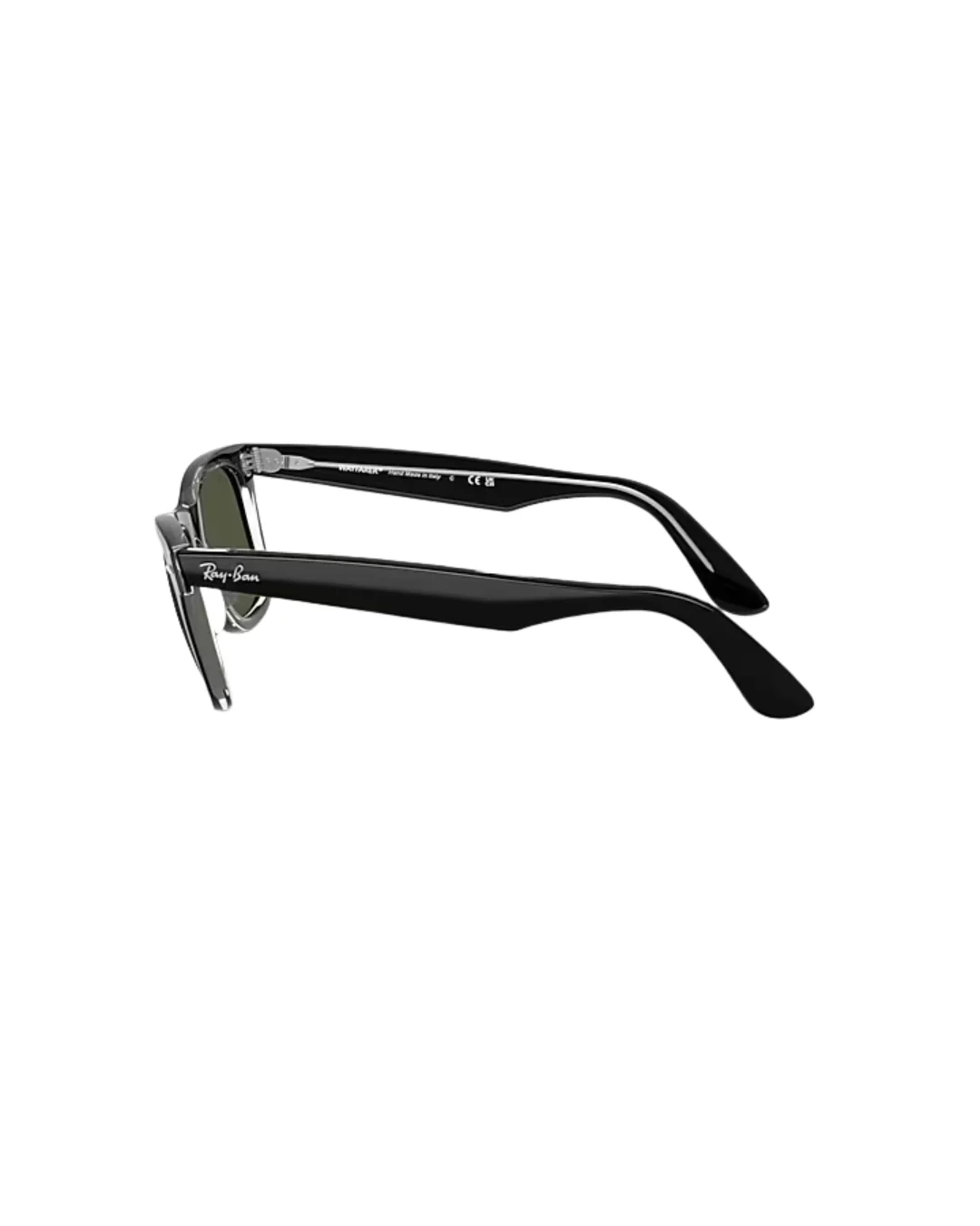 Ray-Ban Wayfarer are an iconic style that have been popular for decades. The square shape and polished black on transparent frame color make these sunglasses a versatile choice that can be worn with any outfit. The green lenses offer 100% UV protection and the solid color treatment ensures they will never go out of style.