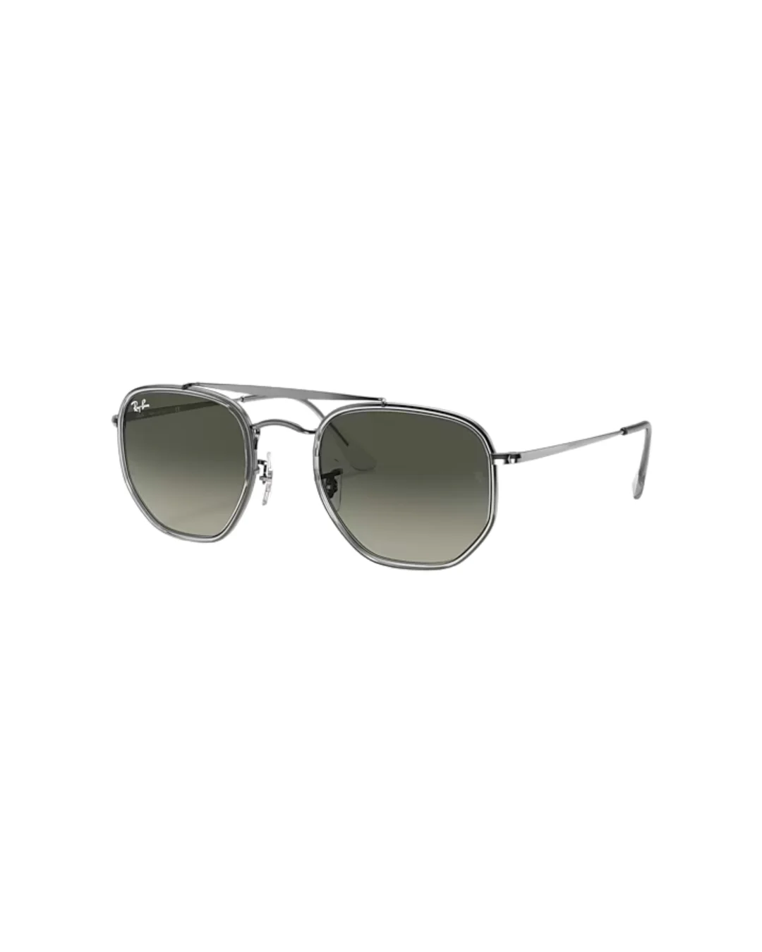 Este estilo distintivo, una nueva forma para la familia General, incluye detalles característicos de la marca, como las varillas y el doble puente planos. Las monturas metálicas con forma hexagonal y cubiertas de plástico se combinan con las lentes degradadas para crear un look estiloso que causará un impacto instantáneo.