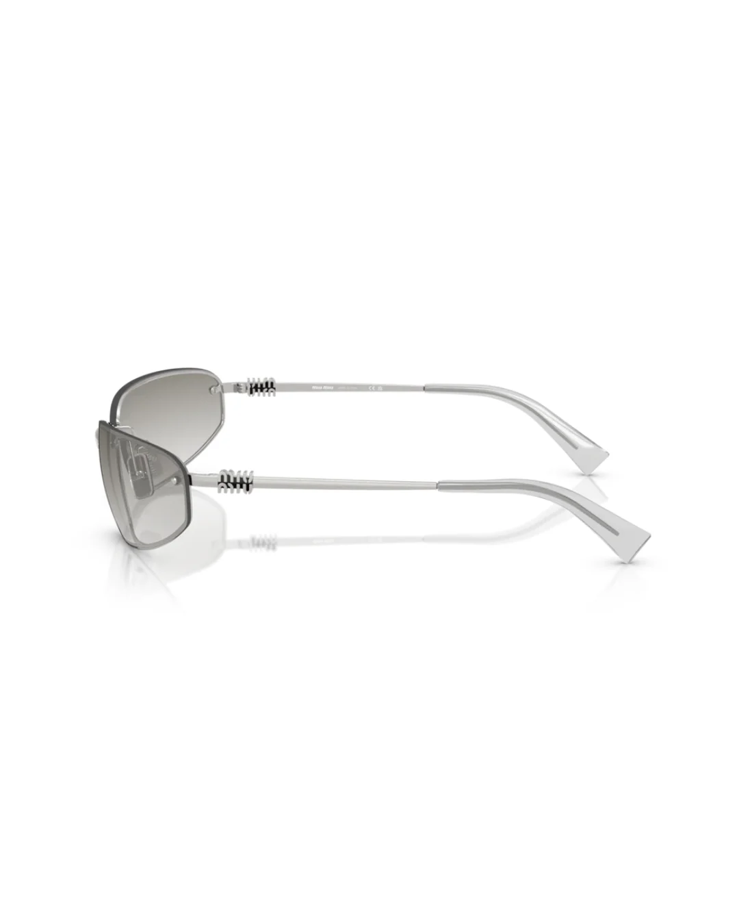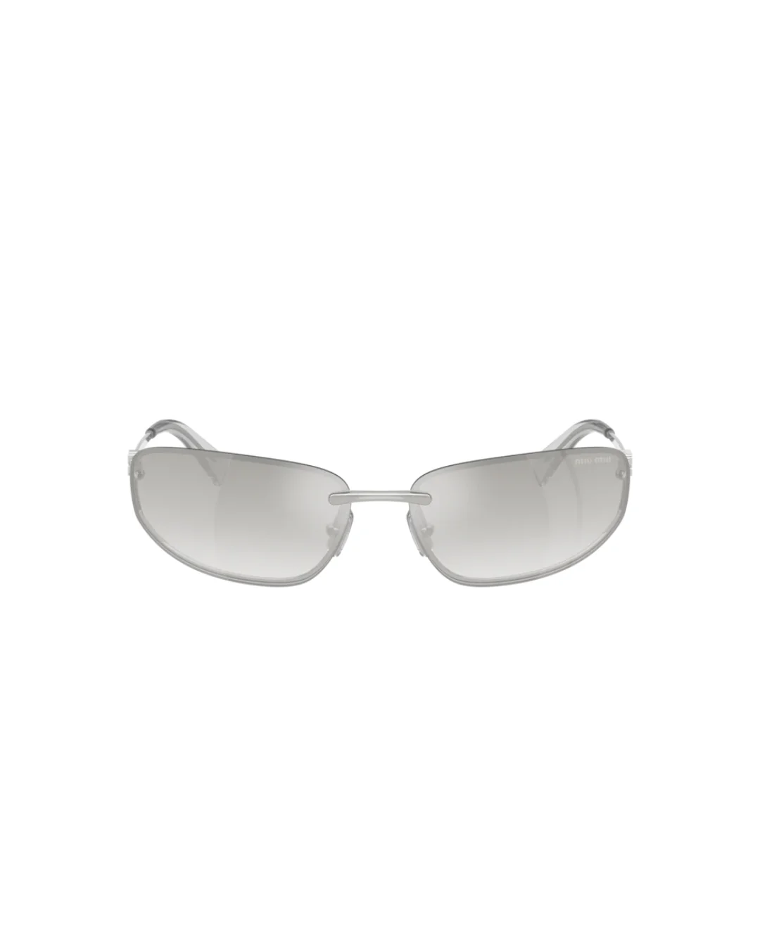 Gafas de sol Miu Miu Nocturne MU A50S 1BC8H1 68 en color plata. La montura color plata 1BC8H1 se complementa con lentes con acabado degradado en plata transparente. Este modelo presenta una forma ovalada de metal
