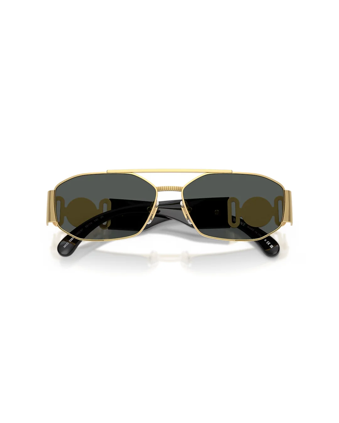 Realza tu estilo con las gafas de sol Versace VE2287. La montura y las varillas metálicas doradas irradian sofisticación, mientras que las lentes gris oscuro ofrecen una opción de color sólido muy versátil. Estas gafas de sol presentan una forma irregular que añade un toque de originalidad a su diseño. Envuélvete con la elegancia atemporal de esta exquisita fusión de estilos del pasado y el presente.